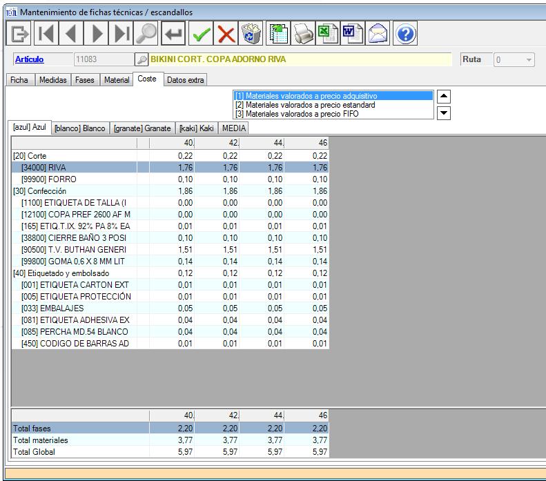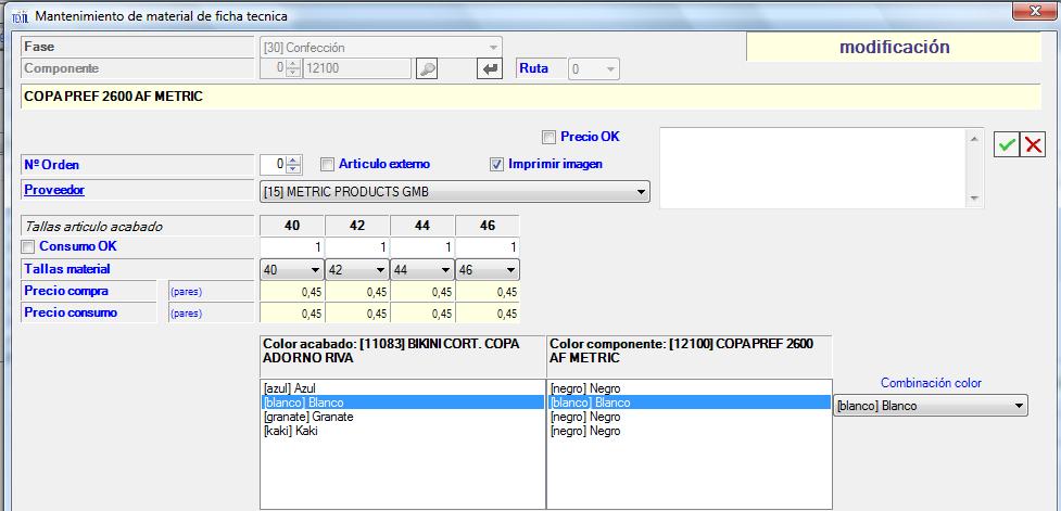 Proporciona una funcionalidad excepcional, así por ejemplo, definir las combinaciones de colores y tallas entre producto acabado y las materias no puede ser más sencillo.