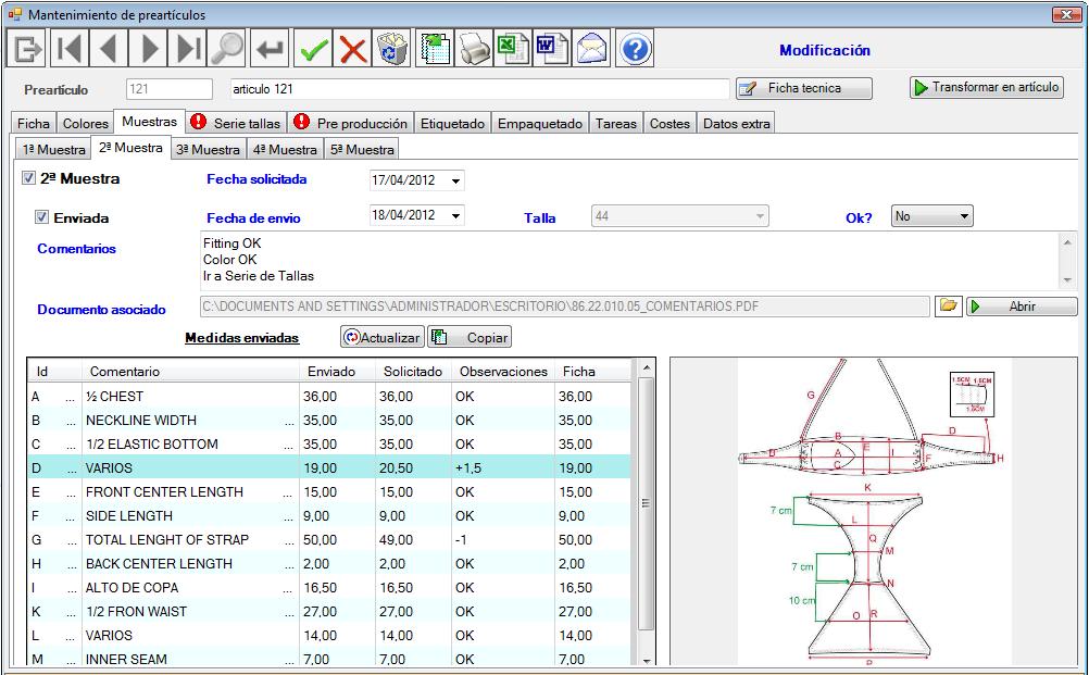 La talla que se ha enviado, las medidas correspondientes